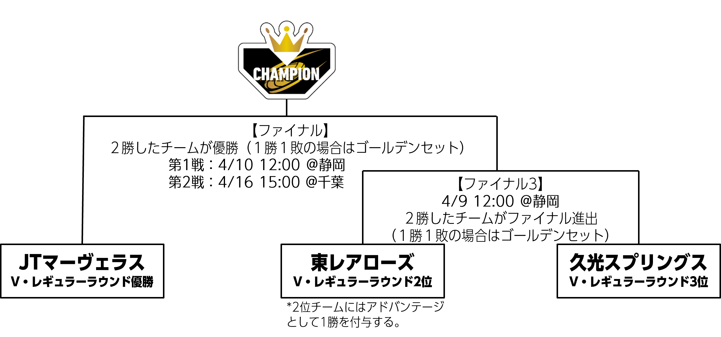 12:00~ V1女子 JTマーヴェラス (RR優勝) vs. ファイナル3の勝利チーム