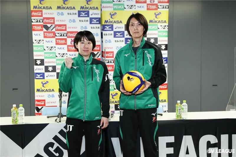 会見は新型コロナウイルス感染拡大対策のためリモート形式で、V・レギュラーラウンド2位の東レアローズ、3位の久光スプリングス、優勝のJTマーヴェラスの順番でそれぞれ別々に行われました。
