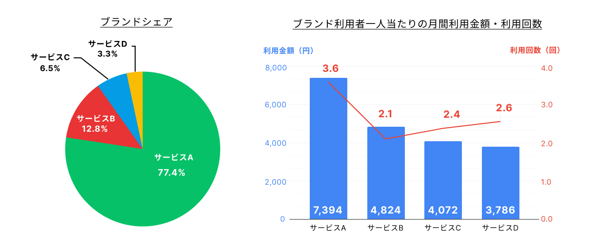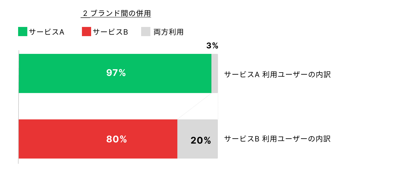 さらに、サービスBのユーザーのうち20%がサービスAも併用していることがわかりました。ユーザーが様々なシチュエーションに応じて自分に最適な選択を行い、両サービスを使い分けていることがうかがえます。