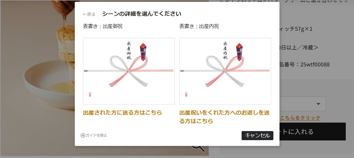 技術的なサポートだけでなく、見やすさや分かりやすさ、さらには言葉の選び方など、顧客目線で細部まで丁寧にサポートしていただきました。画像と分かりやすい文章を組み合わせたガイドにより、「のし選び」に不安のあるお客様でも安心して、簡単に利用でき、大切な方への贈り物にも安心して利用いただけるガイドとなりました。導入後は、問い合わせ件数や選択ミスによる顧客確認の手間が減少し、業務効率の面でも大きく貢献しています。非常に満足度の高いガイドとなりました。