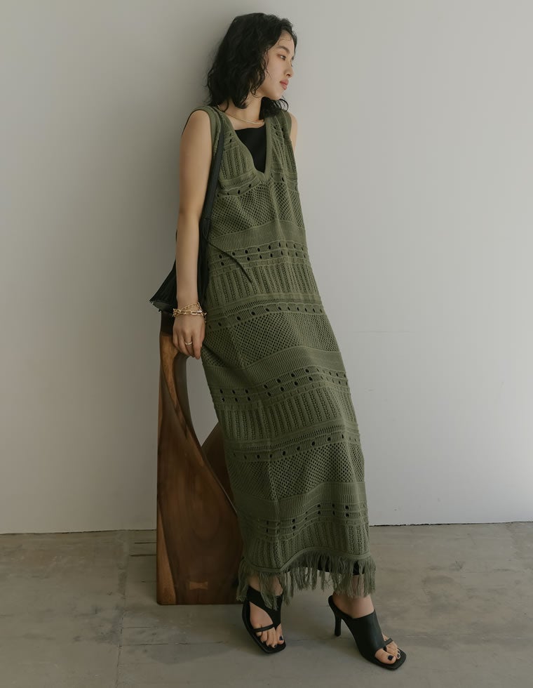 [低身長サイズ有]前後2WAYかぎ針ニットジレワンピース