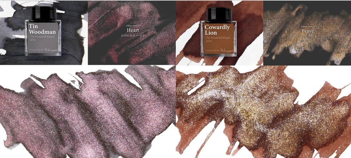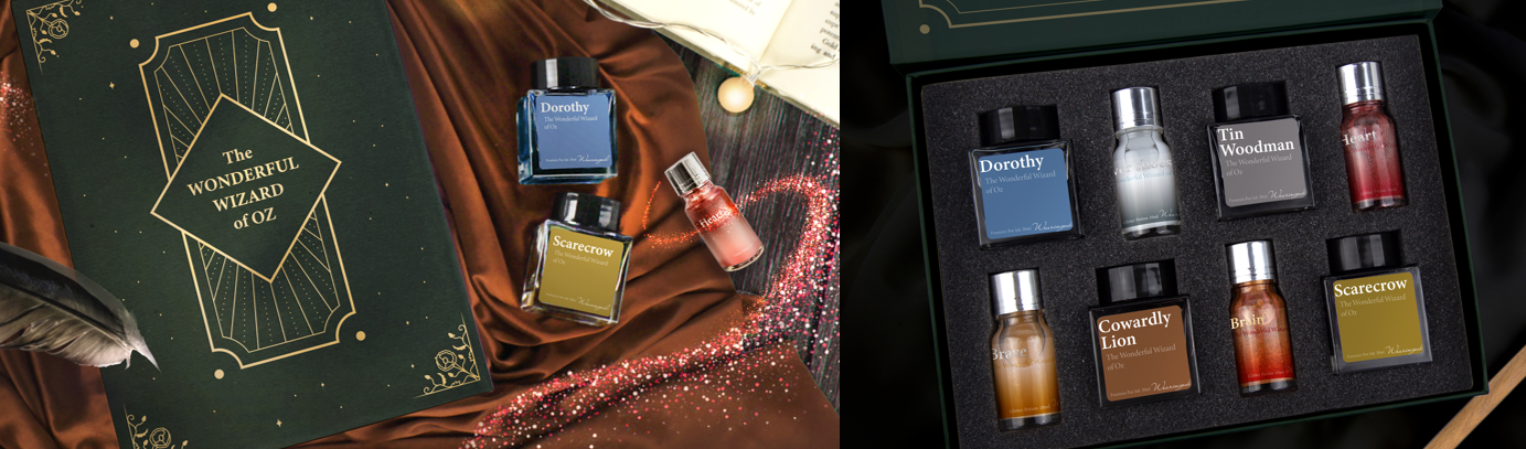 文学作品『オズの魔法使い』の世界観を表現したラメ液とインクをセットにしたインクセット「The Wonderful Wizard of Oz Spell Book Set」は4色のラメ液と4色のインクがセットとなった商品。