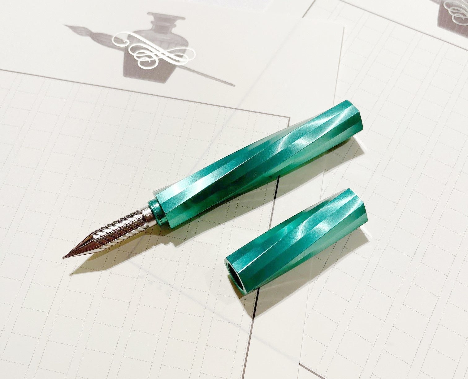 銀座 蔦屋書店限定色は「もしも海の中に文房具屋があったら……」と幻想的な海底の光をイメージしたカラーで制作されました。classical spiral(クラシカル スパイラル)という形を採用し、角度によって金属ならではの質感や変化する軸色が魅力的な一本です。DRILLOGの象徴でもあるドリル形状のペン先を着装することで好きなインクと一緒にワンランク上の手書き体験をお楽しみください。