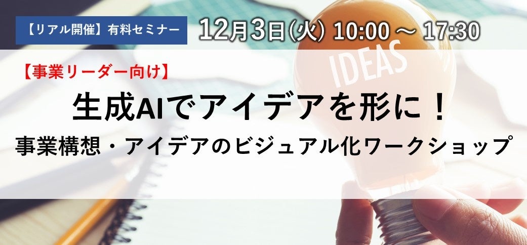 株式会社Aoba-BBT(所在地:東京都千代田区、代表取締役:柴田巌、以下Aoba-BBT)は、2024年12月3日(火)に、生成AIを活用したビジュアル化ワークショップ「【事業リーダー向け】生成AIでアイデアを形に!事業構想・アイデアのビジュアル化ワークショップ」を開催いたします。