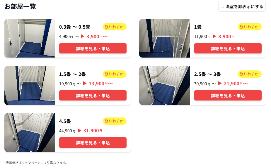 荷物以上に大きな部屋を借りてしまうことや、狭すぎて荷物が入らなかったなんていうトラブルを回避できます。