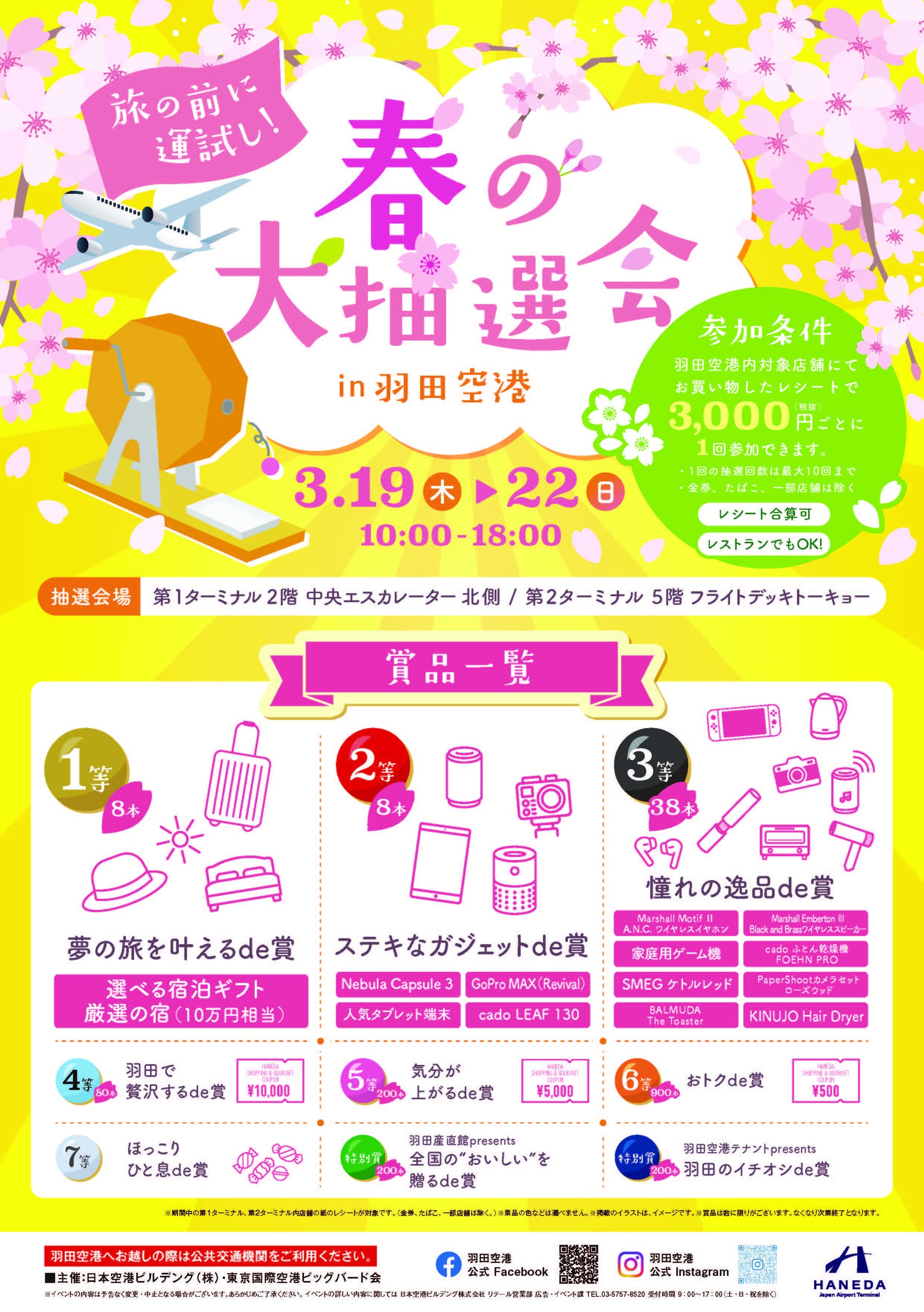春の羽田空港でのお買い物とあわせて、ぜひ抽選会をお楽しみください。