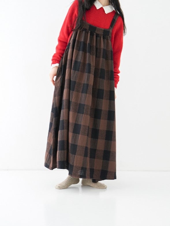秋冬らしいウォーム感のあるウールコットンリネンの素材を使用したジャンパースカートです。