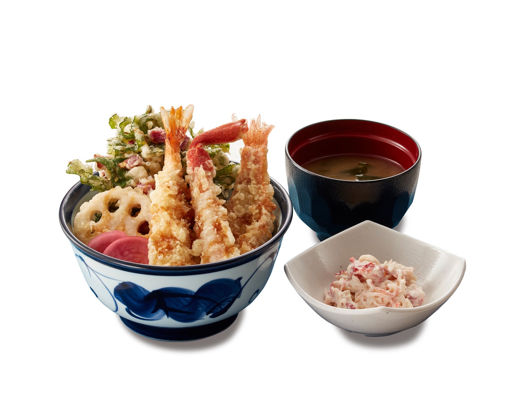かにと海老の冬天丼プラス冬小鉢 (カニ風味のサラダ) 1,120 円