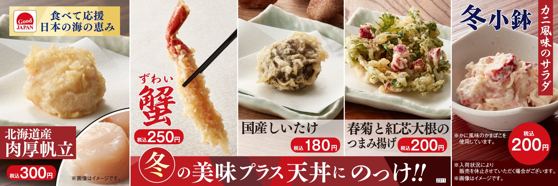天丼てんやでは、冬キャンペーンの下記商品が「Good JAPAN」企画対象商品です。