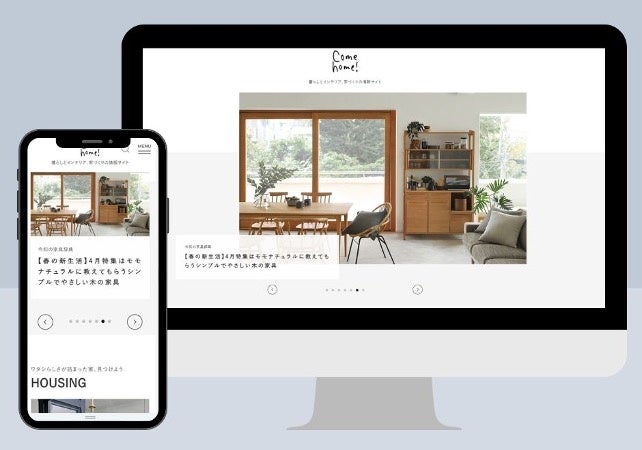 株式会社主婦と生活社(所在地:東京都中央区)が運営するウェブメディア「Come home! web」(https://comehome-web.jp)は、2023年4月1日に、サイトをリニューアルしました。ライフスタイルの変化に合わせて、住まいやインテリアを居心地よくアップデートするための情報を、よりわかりやすく、アクセスしやすく発信しています。