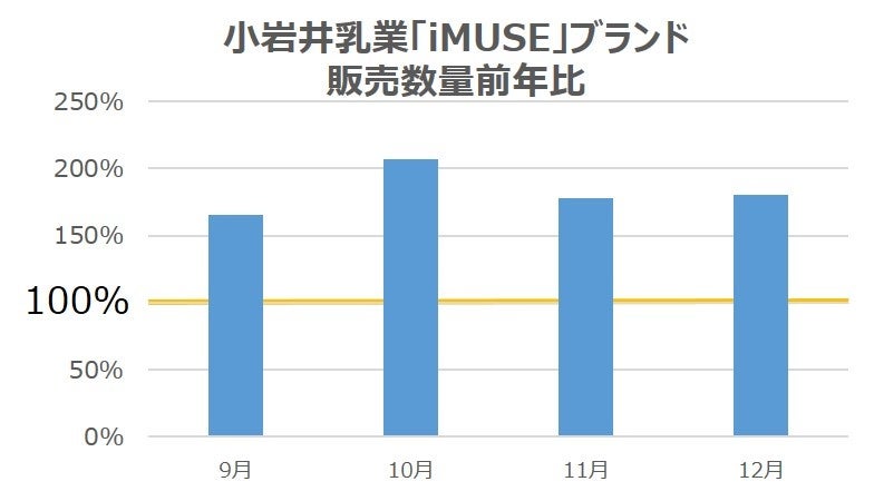 ・「iMUSE」ヨーグルト群は、健康意識、免疫ケア意識の高まりとともに、習慣的に摂取・購入いただくお客様が増加しました。また昨年9月に新発売した低脂肪タイプや、リニューアルした商品群も高く評価いただき、10月以降はスーパーマーケットでの取り扱いも増加しました。