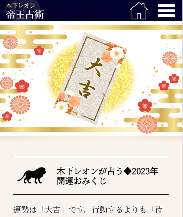 ※「2023年開運おみくじ」をご利用いただくには、公式サイト『木下レオンの占い』(https://kinoshita-reon.jp)への会員登録が必要です。(月額330円)