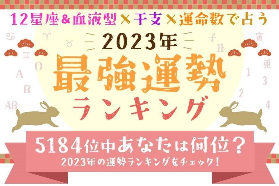 『2023年の最強運勢ランキング』全5184位中…あなたは何位?12星座&血液型×干支×運命数占いで順位発表!