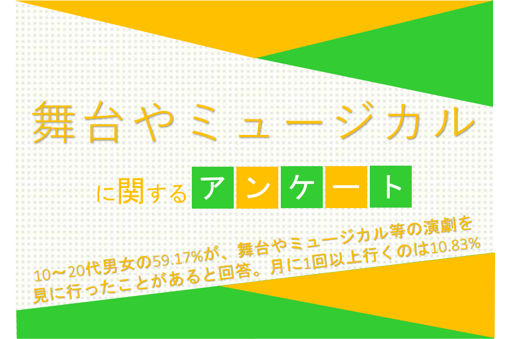 10~20代男女の59.17%が、舞台やミュージカル等の演劇を見に行ったことがあると回答。月に1回以上行くのは10.83%【舞台やミュージカルに関するアンケート】