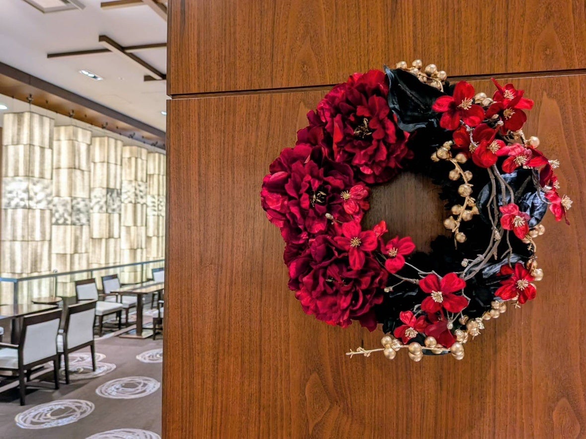 京王プラザホテルに灯る“赤とゴールドの森”- 高さ約5mのツリーと英国リースが彩る、心ほどける聖夜 -
