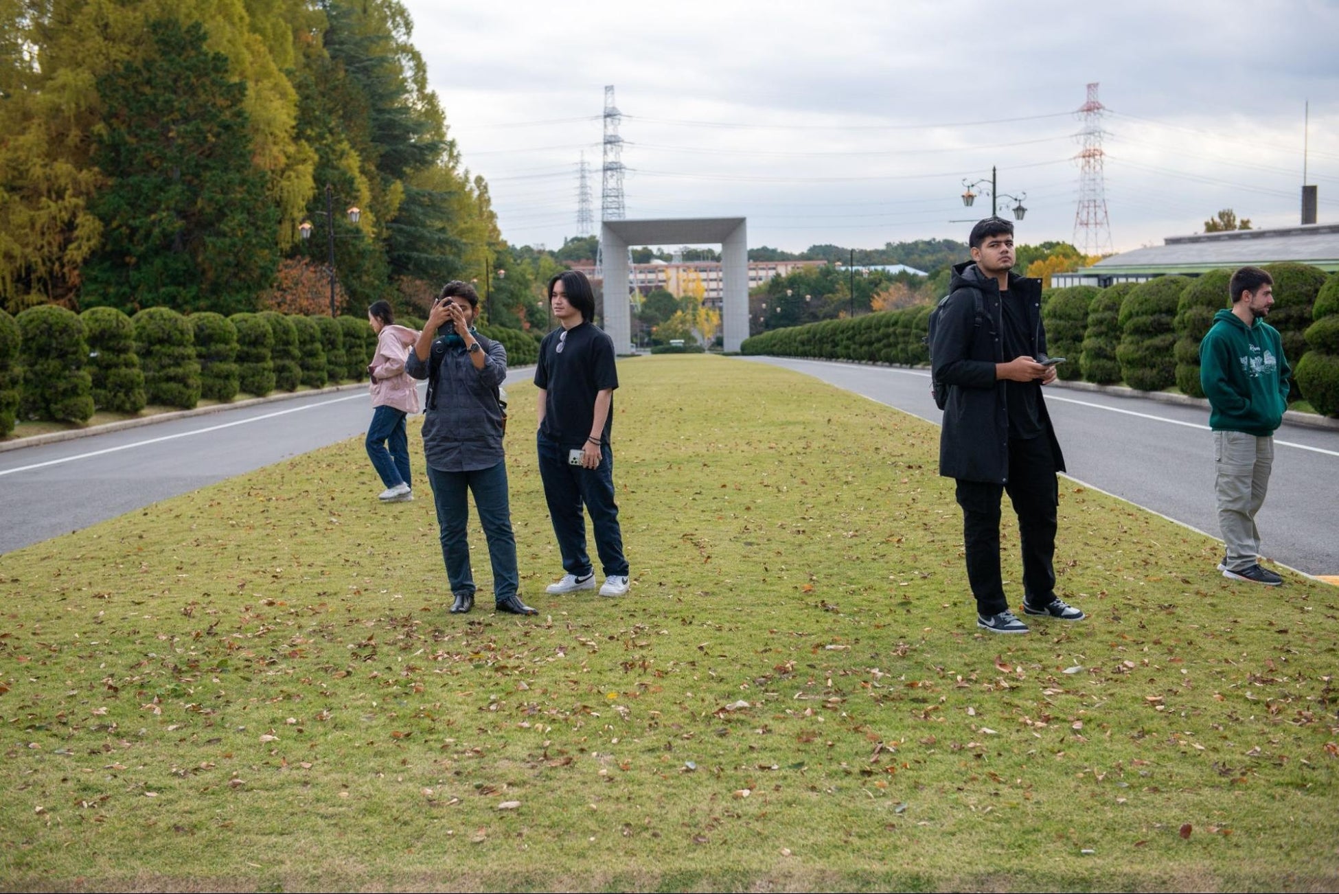 当日は、国際学部・堀八重子准教授によるレクチャーのもと、16名の学生が俳句創作に挑戦しました。参加者はまず深呼吸で心を整え、「鳥の目・虫の目で自然を観察する」という視点を意識しながら屋外を散策。撮影した風景やその場で感じた印象をもとに、それぞれの一句を紡ぎました。留学生は各々の国の文化、自然にも思いを馳せながら季語を選び、俳句表現を試みました。