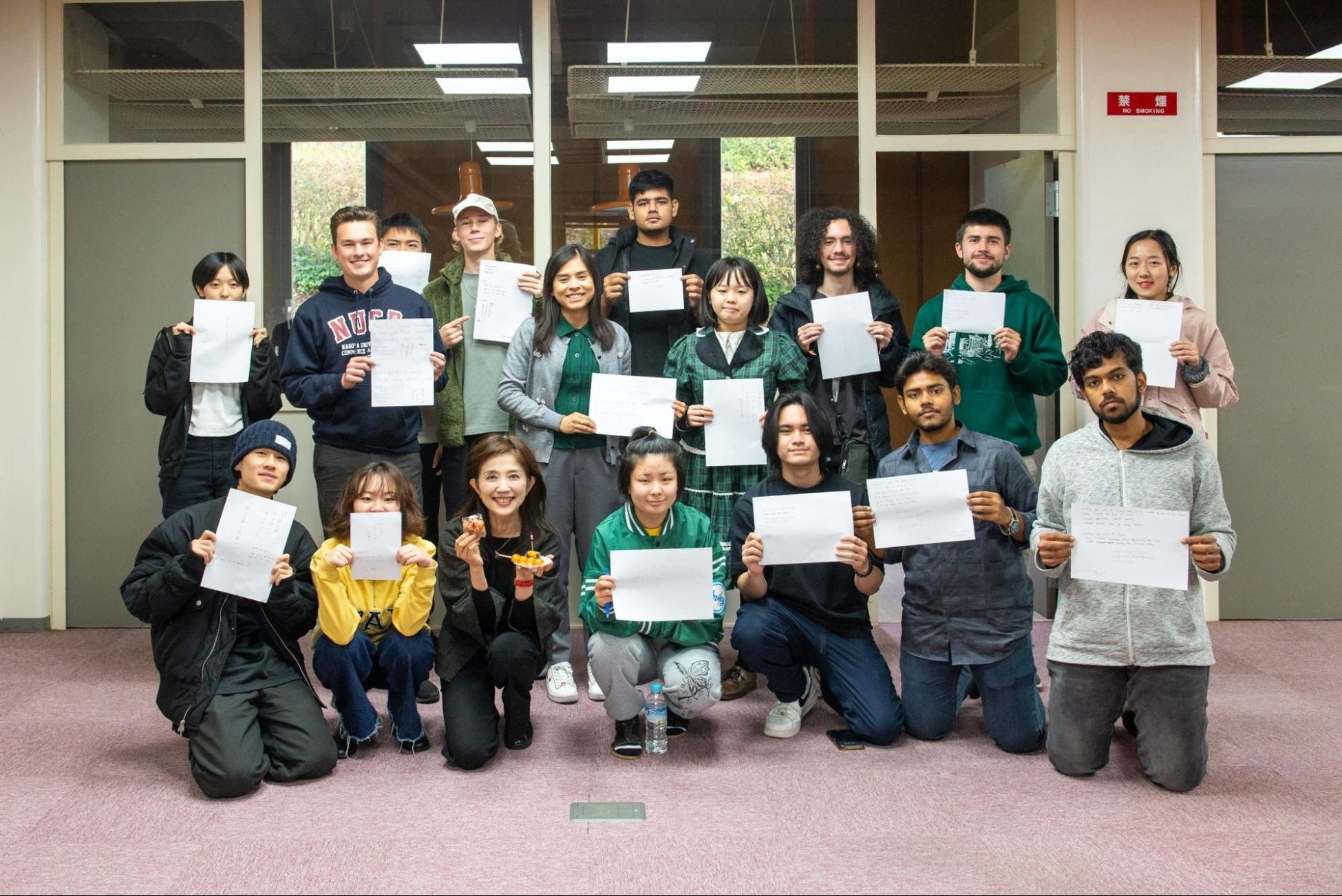 11月12日(水)、本学では留学生を対象とした「俳句体験イベント」を開催しました。本イベントは日本文化への理解促進、および異文化交流の活性化を目的として実施されたもので、多くの留学生が参加し、日本人の学生と共に俳句づくりを通じて日本の伝統文化に触れました。