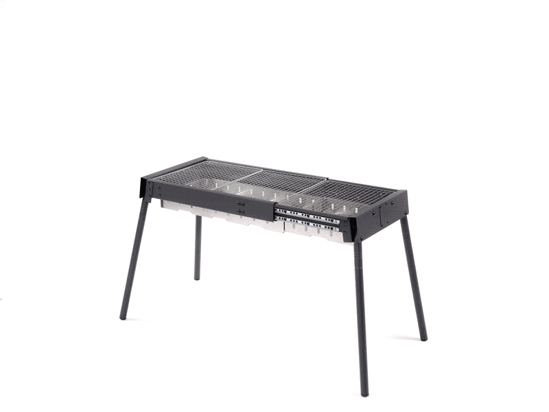 独自のスライドレール機構により、焼き面を44.5cmから65cmまで拡張可能。ソロ・デュオでのしっぽり調理から、最大8人のグループBBQまでこれ一台で完結します。