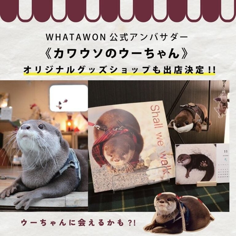WHATAWON公式アンバサダーを務めるカワウソの「ウーちゃん」が、オリジナルグッズショップ『ウーちゃんず ふぁくとりー』としてワタワンマルシェに登場します!