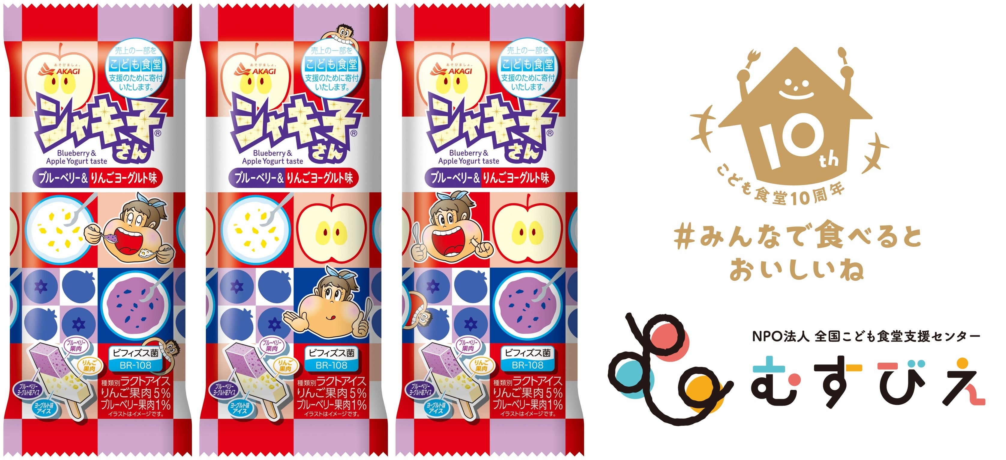 また、商品を通して、未来を担う子ども達の健やかな成長や、地域活性化を支援するために、認定NPO法人全国こども食堂支援センター・むすびえ(所在地:東京都新宿区、理事長:湯浅誠)に、 「シャキ子さんブルーベリー&りんごヨーグルト味」の売上の一部を寄付いたします。