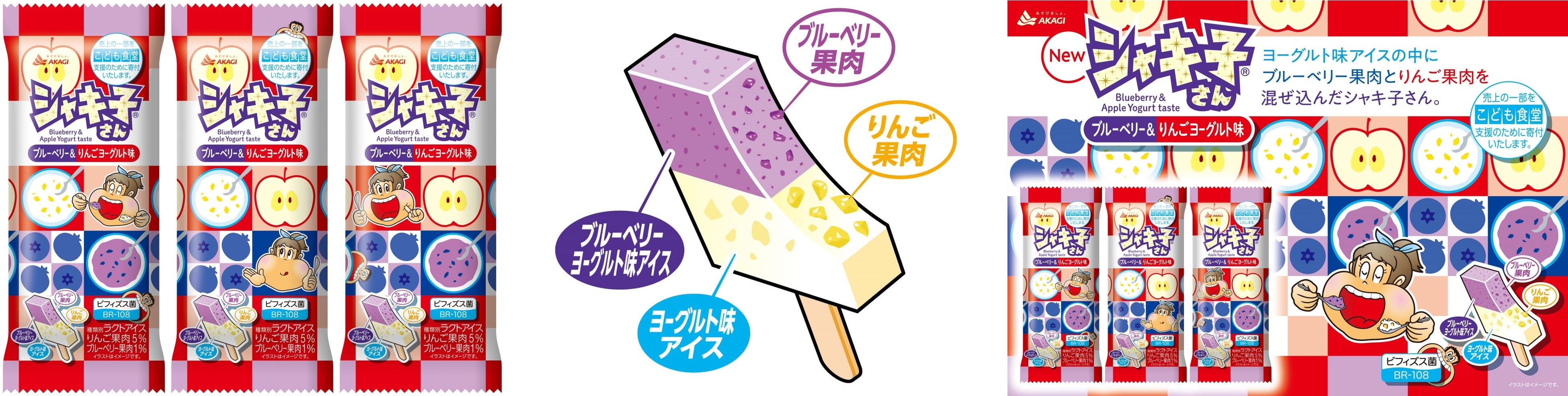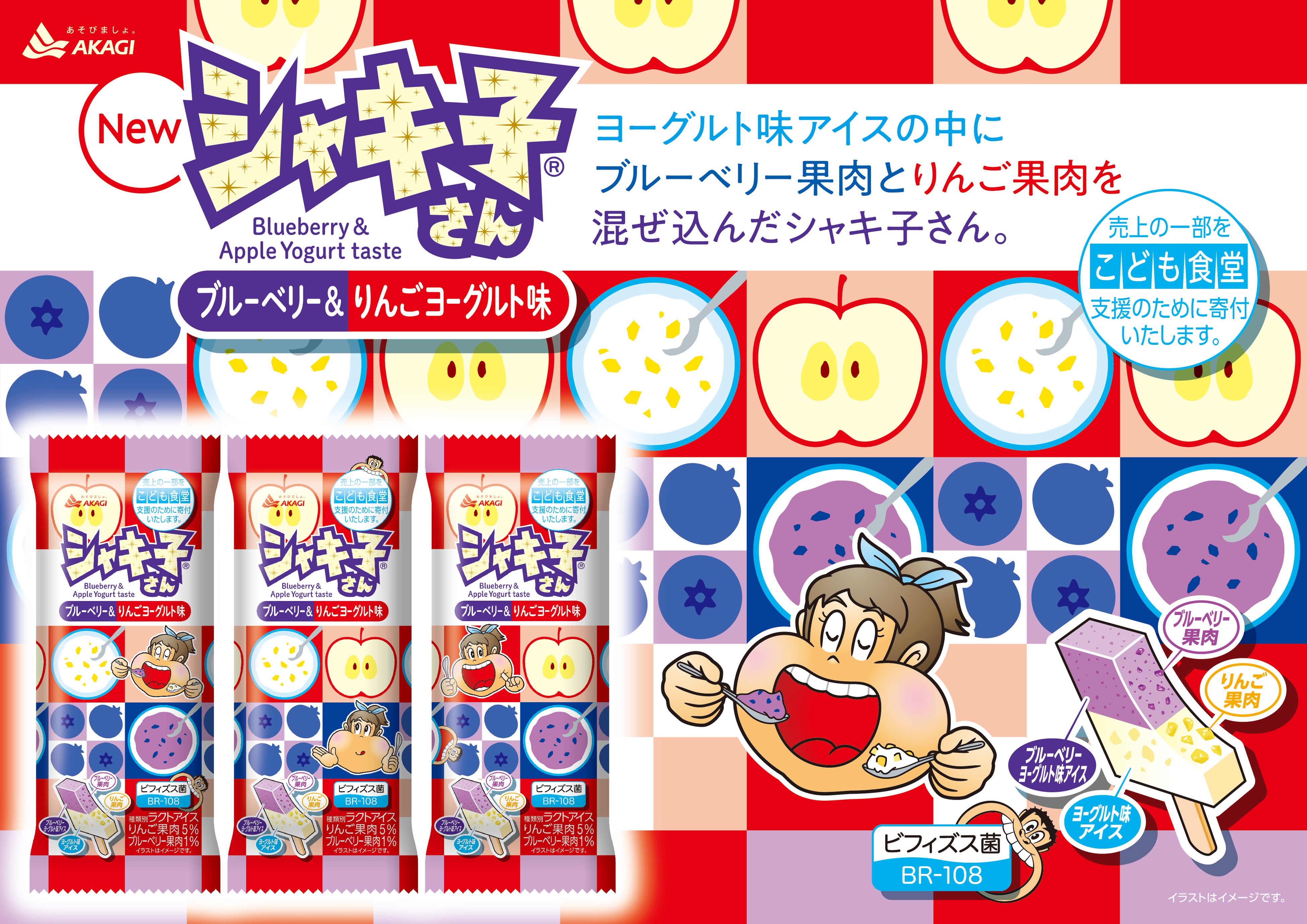 ガリガリ君のお姉さん、シャキ子さんが帰ってきた!今年は2つの味が楽しめる!売上の一部を全国の「こども食堂」支援のために寄付いたします。「シャキ子さんブルーベリー&りんごヨーグルト味」