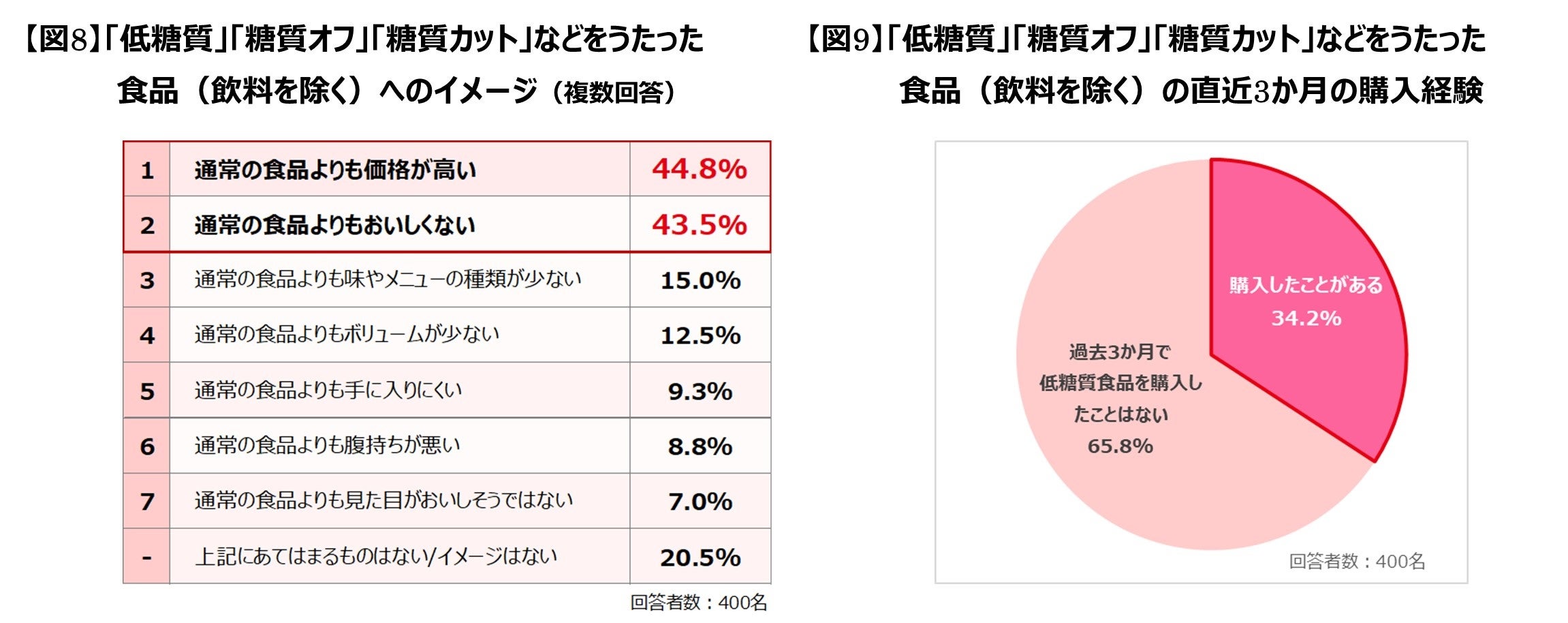 ■4割超が「低糖質食品」に対して「価格が高い」「おいしくない」というイメージ。