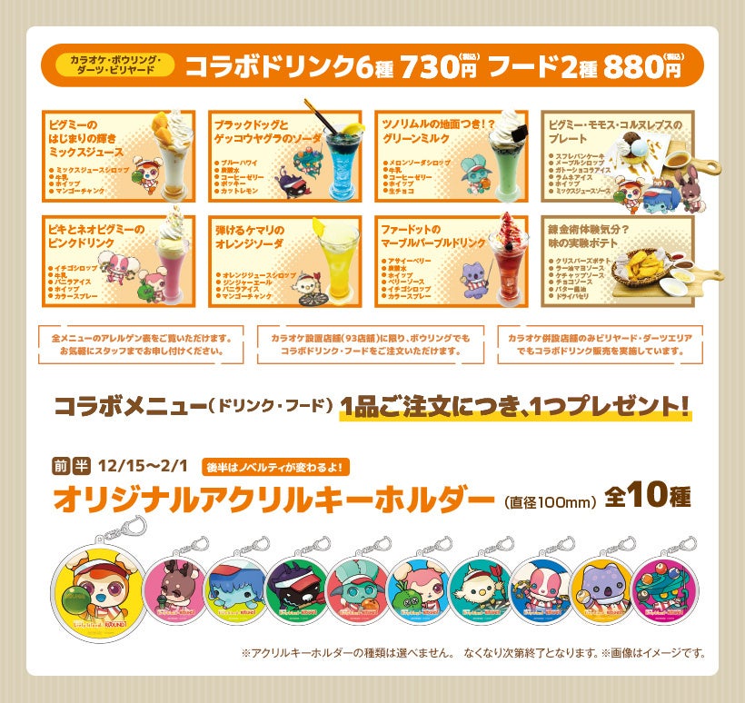 コラボメニューを1品ご注文につき、「オリジナルアクリルキーホルダー(全10種)」を1つプレゼント