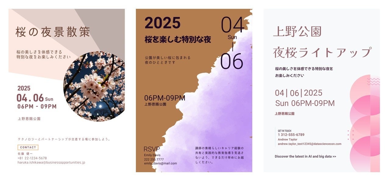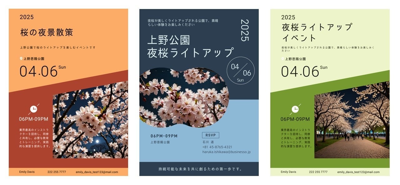 さらに、開催日時や場所、連絡先を入力すれば、それらの情報もデザインに組み込まれます。