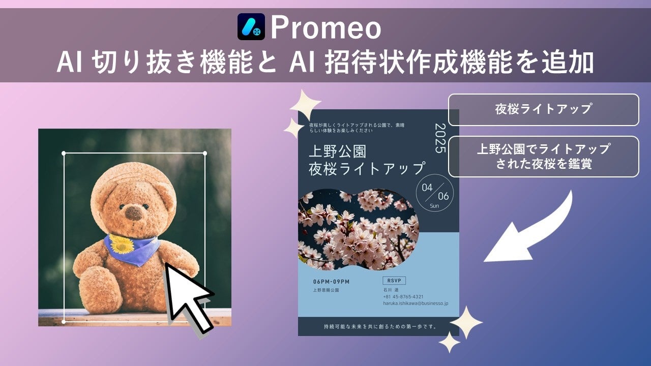 サイバーリンク株式会社(以下、サイバーリンク) は、テンプレートデザインツール「Promeo」に AI 切り抜き機能と AI でイベントの招待状のデザインを作成できる機能を新たに追加しました。