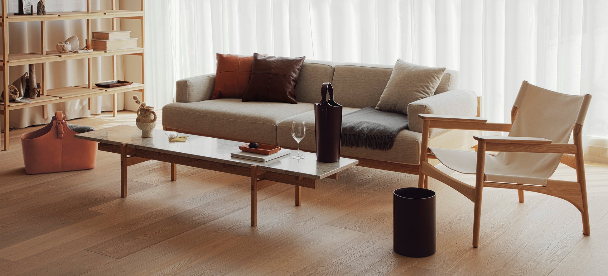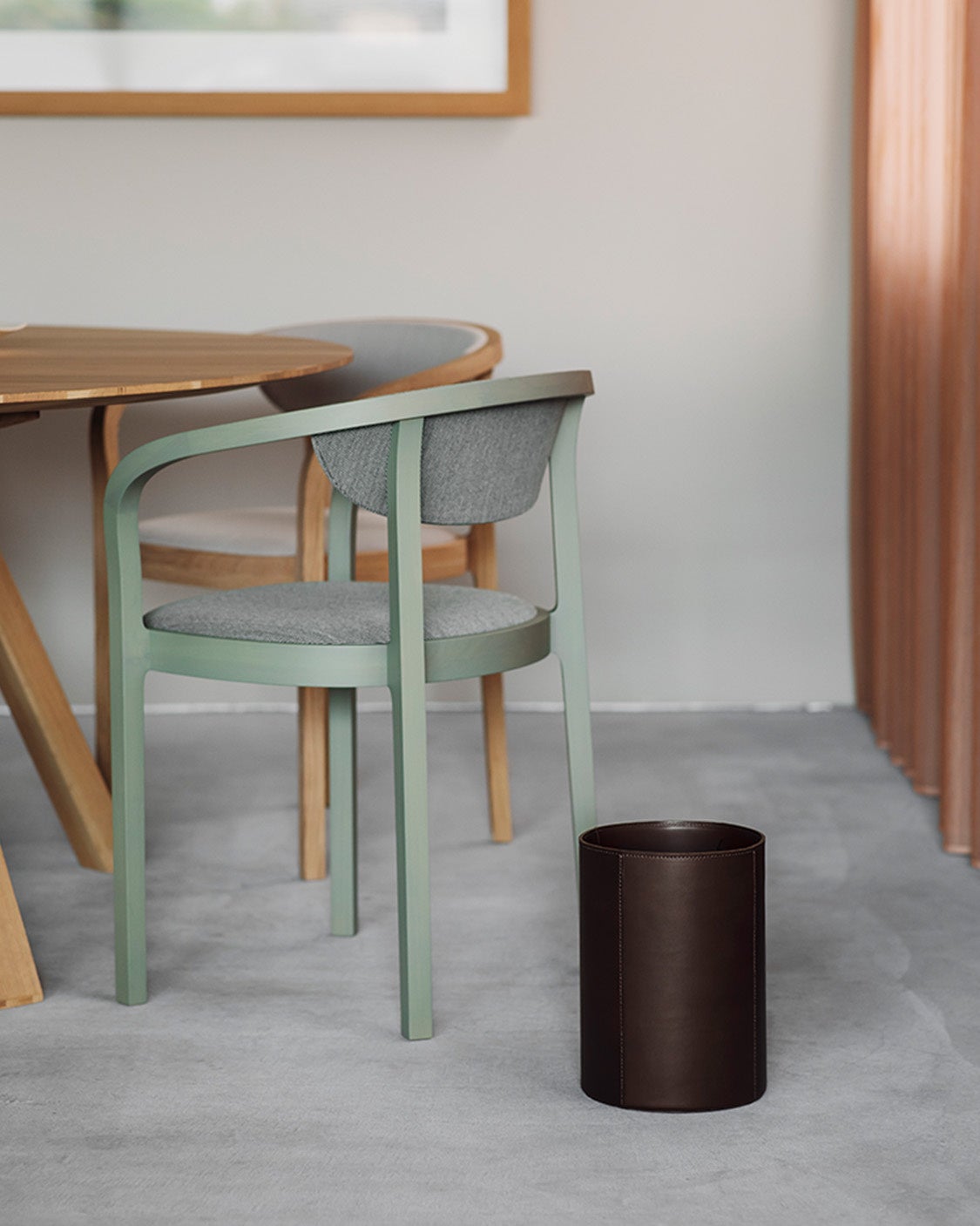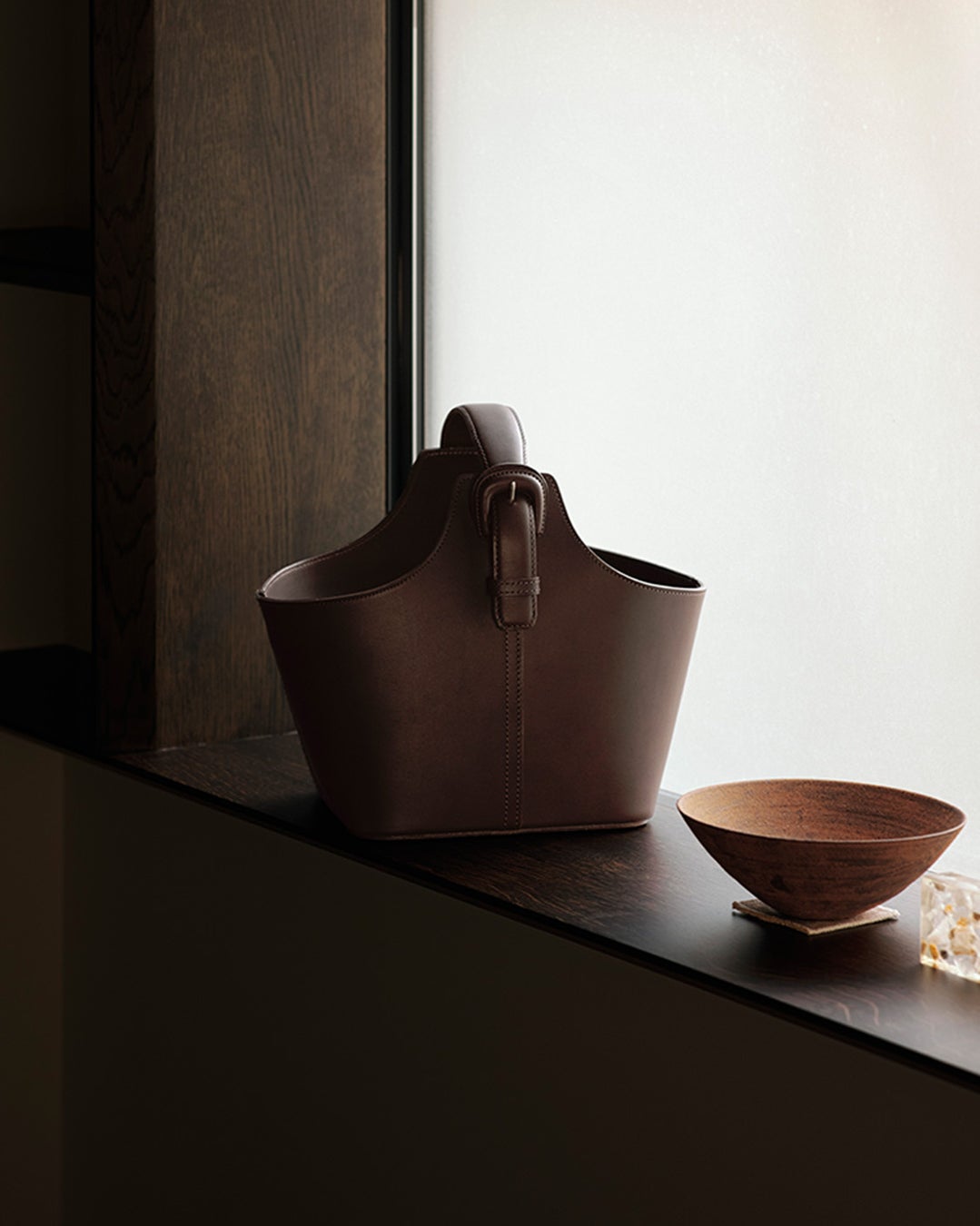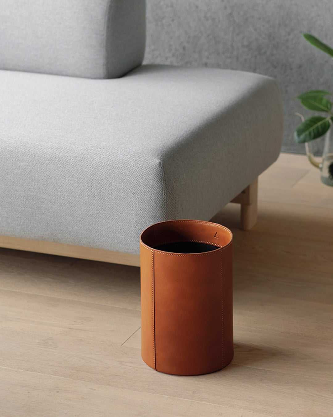 - 品良く佇む、ナチュラルな革のダストボックス