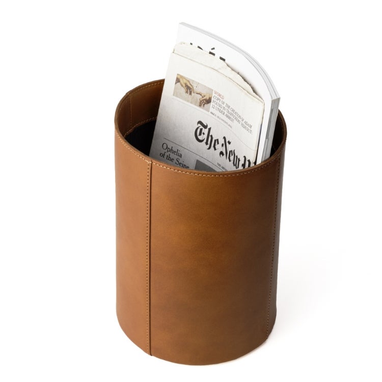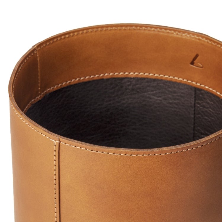 ヌメ革のナチュラルな魅力と表情を生かした、美しい筒状のダストボックスです。内装には防水性・防汚性を備えた「防水ファインレザー」を採用しお手入れしやすい仕様に。ダストボックスの用途以外にも、雑誌やブランケットを収納するなど自由な使い方を楽しめます。