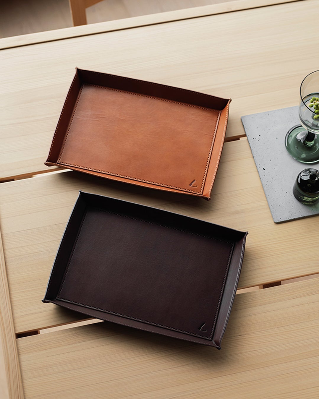 - 2サイズ展開の贅沢な革のトレー