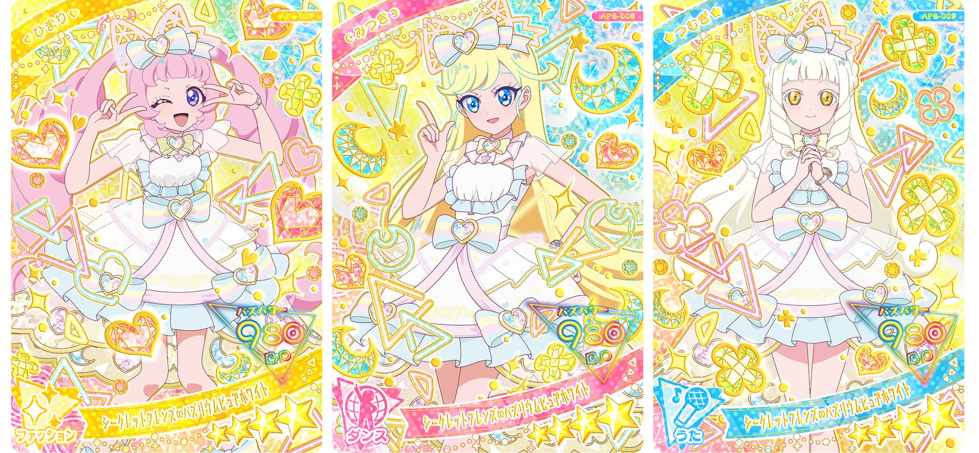 また、「ひまり」「みつき」「つむぎ」の主人公チーム「シークレットフレンズ∞」の新たなチームバズリウムコーデ「シークレットフレンズ∞バズリウムピュアホワイト」の「アイプリカード」も登場します。