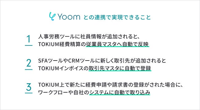 支出管理プラットフォームTOKIUM、iPaasサービスを提供する「Yoom」とのAPI連携を開始