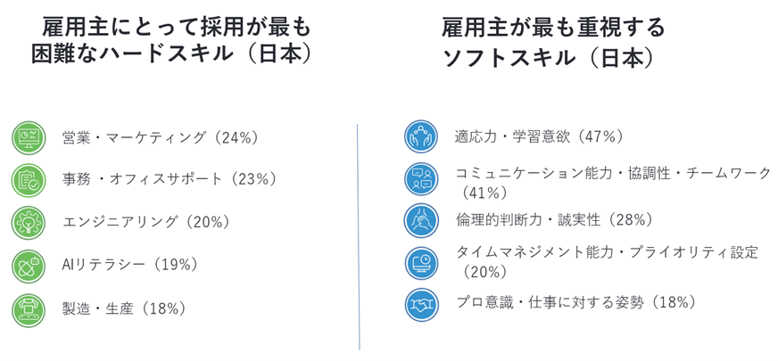 【2026年調査結果/日本】需要が高いハードスキル/ソフトスキル:「営業・マーケティング」と「適応力・学習意欲」がそれぞれ1位に