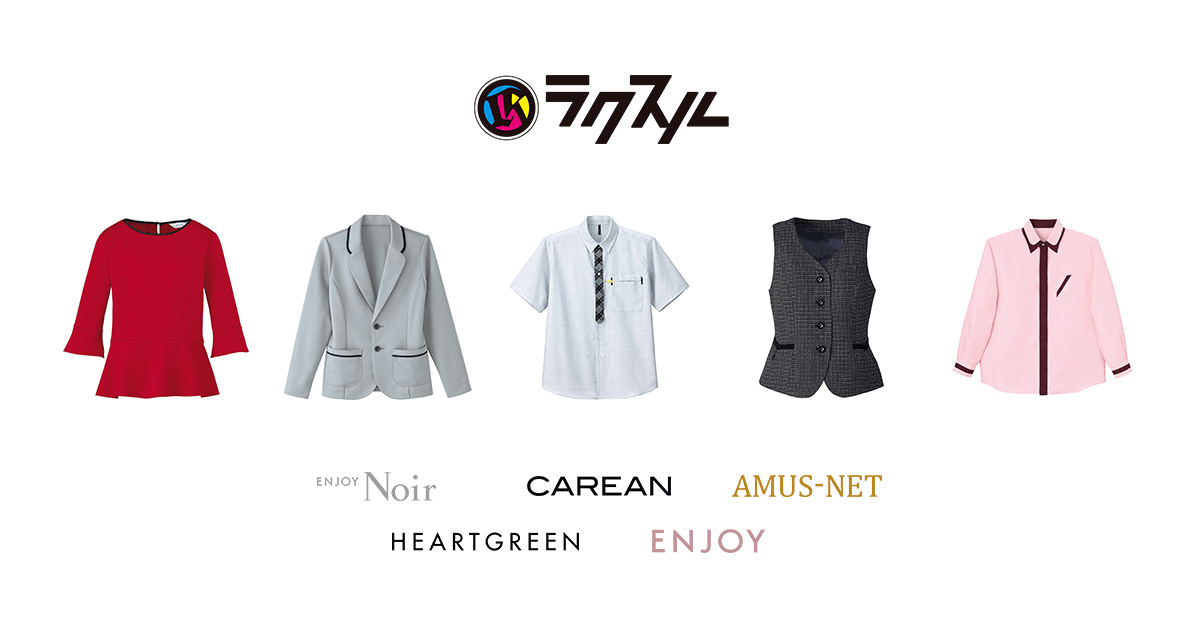 アパレル・ユニフォーム事業の新商品として、清掃・物流向けのCAREAN(キャリーン)、介護・福祉施設向けのHEARTGREEN(ハートグリーン)商品への企業名や、ロゴの印刷加工が可能となり ます。また、事務・オフィス向けのENJOY(エンジョイ)、ENJOY Noir(エンジョイノワール)、AMUS-NET(アムスネット)商品の取り扱いも開始いたします。