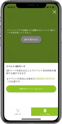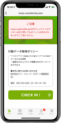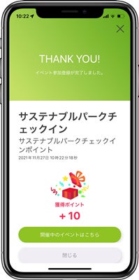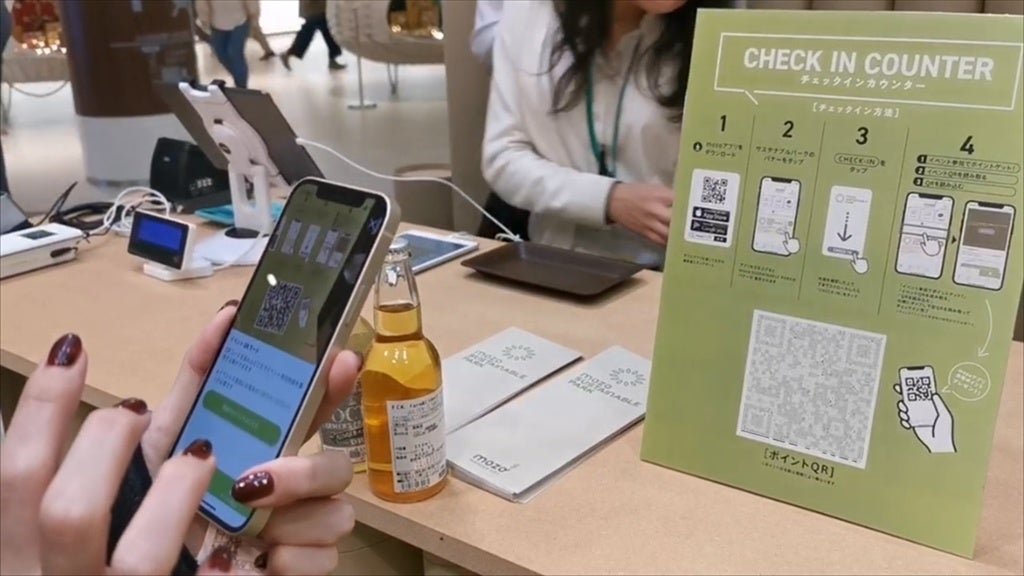 「mozo SUSTAINABLE PARK」内でmozoアプリにチェックインしチェックインカウンターのQRコードを読み込むと、10ポイント獲得できます。