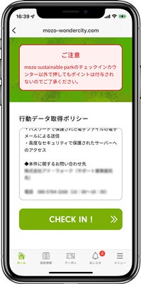 mozoアプリはmozoワンダーシティでのお買物額に応じてポイントがたまる会員アプリで、現在の会員数は約12万人。クーポンやプッシュ通知機能があり、アプリ会員限定企画も数多く実施しています。たまったポイントはmozoPLUSで利用することもできます。今回の「mozo SUSTAINABLE PARK」でもチェックインした会員様にはmozoアプリポイントをプレゼントします。