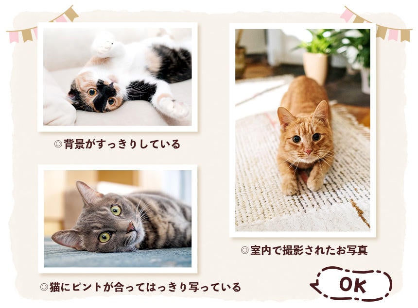 今回募集するのは1月~6月のページに掲載するお写真ですが、その月らしさや季節感は必要ありません。ポイントは、いつもお家で気ままに過ごしている猫の「とびきり、かわいい!」姿です!