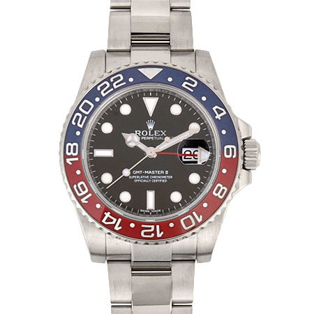 アメリカのパンナム航空の依頼を受け、1955年に開発されたパイロットウォッチです。ホワイトゴールドを使用し、ファンにはたまらない青赤の2トーンカラーです。