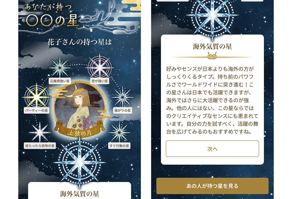 公式月額サイト「星ひとみの占い―5秒で見抜く宿命と刻」では、〇〇の星がわかる占いを完全再現!300種類近くある星の中から、あなたの持つ6〜8つの星を教えてくれます。