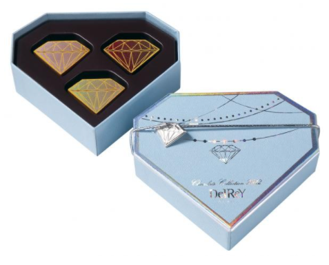 今回Cake.jpでは、「デルレイ」の人気商品を販売します。「デルレイセレクション」は、見た目も可愛らしいピンクダイヤモンドショコラと、レッドダイヤモンドダークを楽しめる一品。「デルレイダイヤモンドBOX」は、人気のダイヤモンドショコラ3種をダイヤモンド型のパッケージに詰めてお届けします。「ダイヤモンドショコラ」は、濃厚なチョコレートがとろけ出す贅沢な一品です。