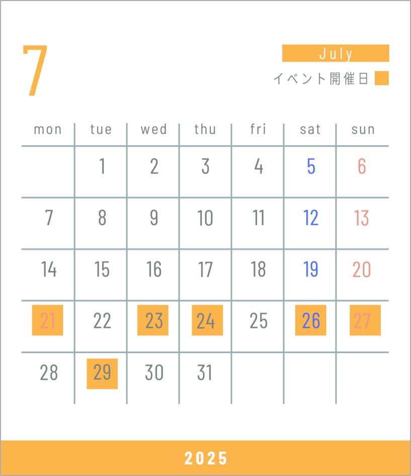 ◆7月 イベント日時・タイトル・@開催場所一覧