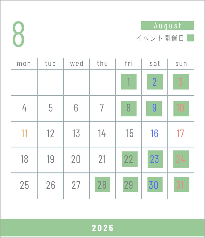 ◆8月 イベント日時・タイトル・@開催場所一覧