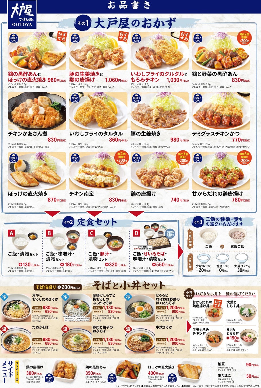 また、大戸屋のお弁当はおかず単品でもご提供しており、ご飯の “おかず” としてもご利用しやすくなっています。