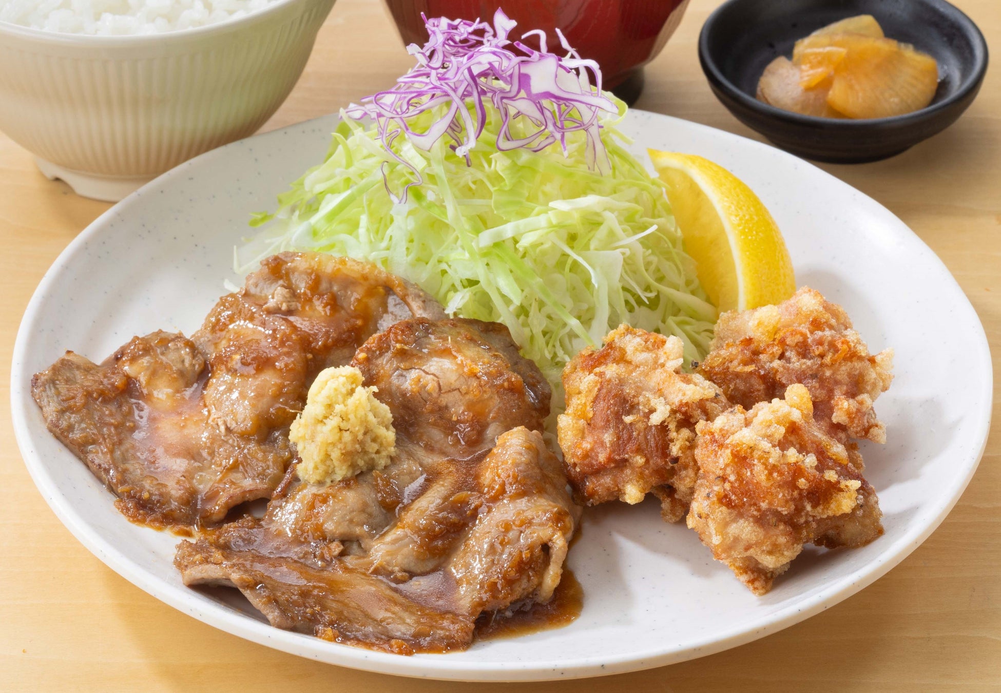 豚の生姜焼きと鶏の唐揚げ
