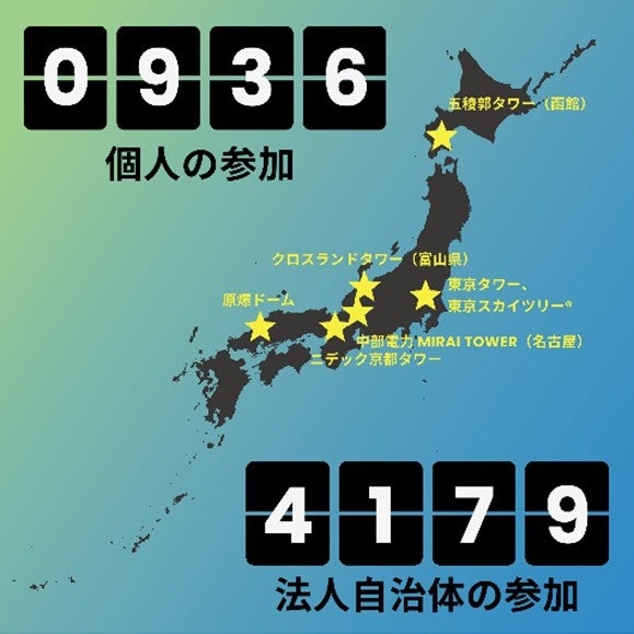 ランドスケープの消灯アクション以外にも、消灯を含むさまざまな環境アクションを実施する旨をWWFジャパンに登録した自治体・企業などの総数は昨年より600件以上増加して4,179件に、個人の参加人数は936人となりました(4月1日現在)。
