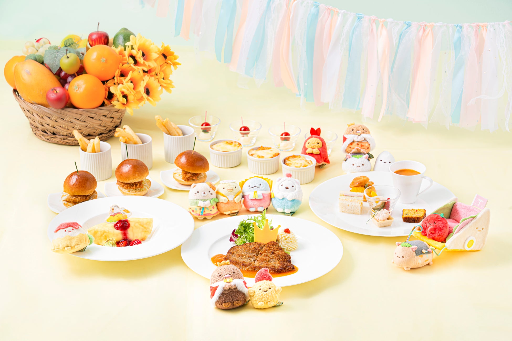 大好評のすみっコぐらしのスイーツブッフェに続いて、「ナイトスイーツブッフェ with すみっコぐらし」を開催!「たべもの王国」の世界観をスイーツ&お料理で表現!