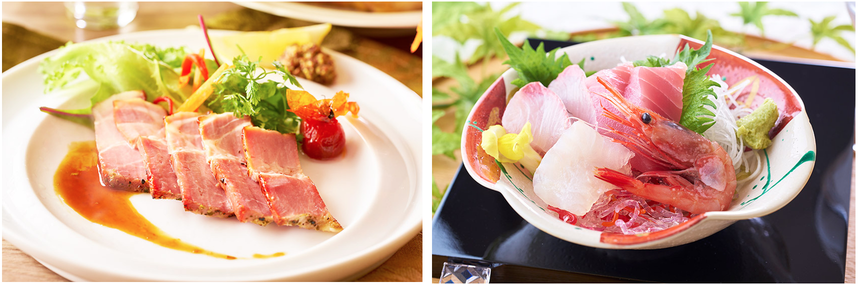 新潟食材を使った一品、酒どころ新潟ならではの酒粕を使った滋味深い味わいのメニューなど、心づくしの料理の数々を秋の夕日と共にお楽しみください。