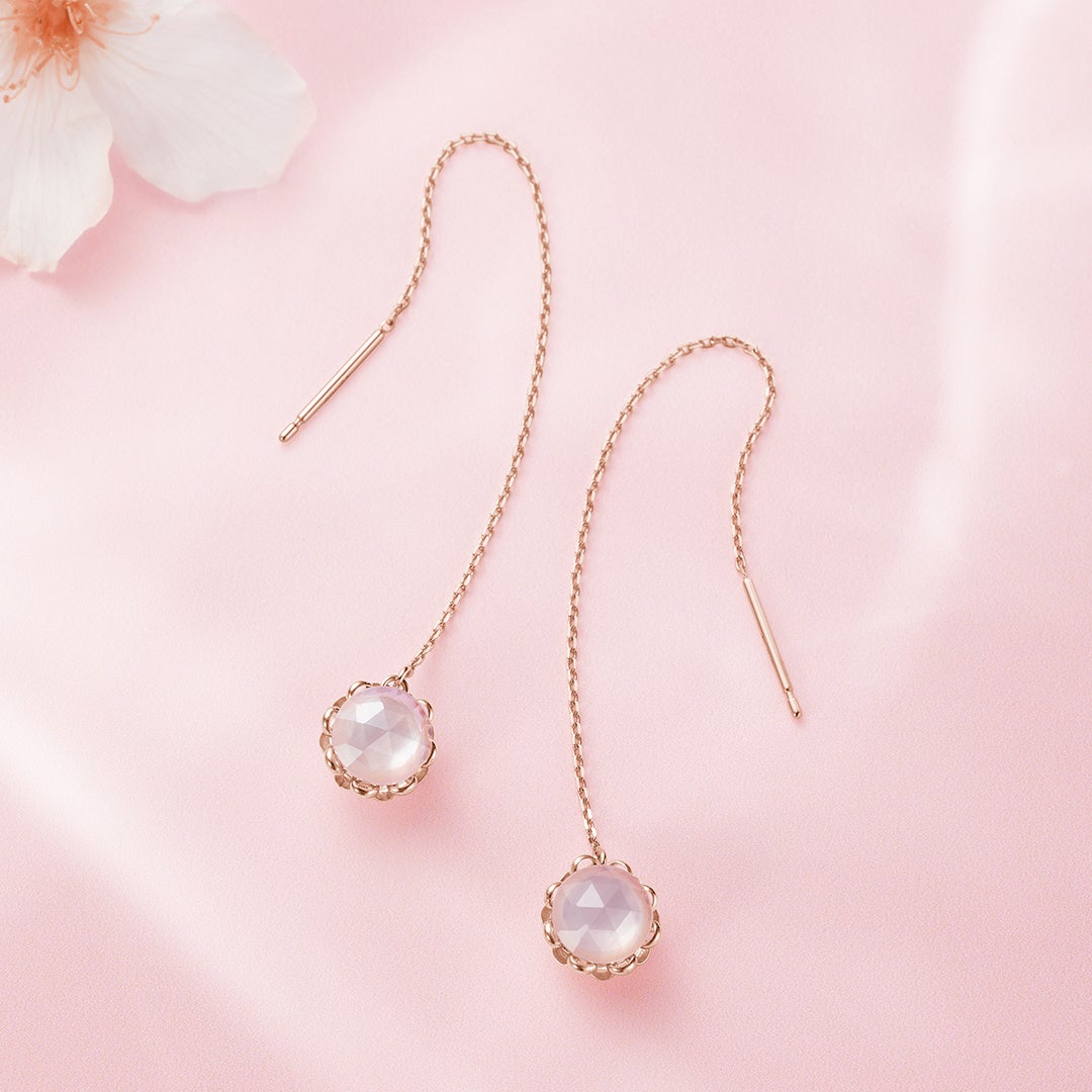 K18PG Pierced Earrings / Rose Quartz / Diamond ¥59,400